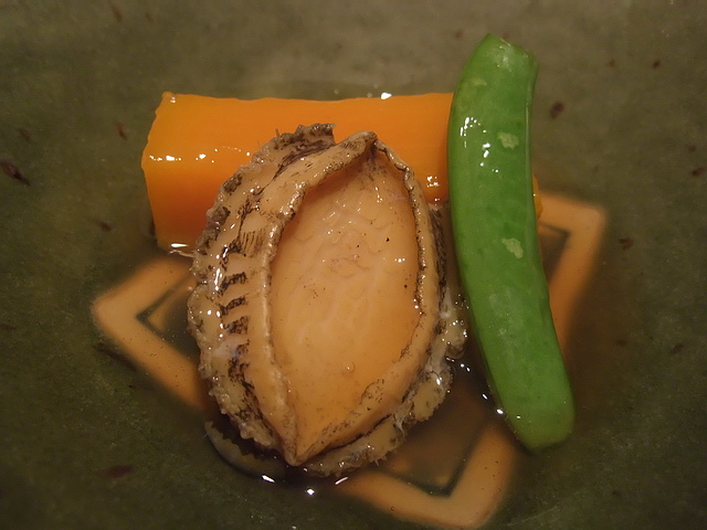 柔煮鮑魚:令人滿足的煮物,鮑魚的柔嫩口感,挾著不死鹹的醬汁,溫溫地,調和的前幾品的冷.......