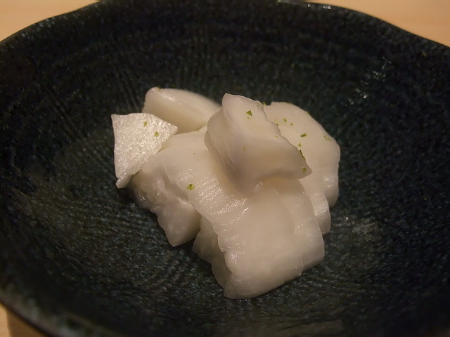鮨二七的招牌之一也不為過,這漬大根佐柚子皮,不吃上個幾盤,還真不過癮哩