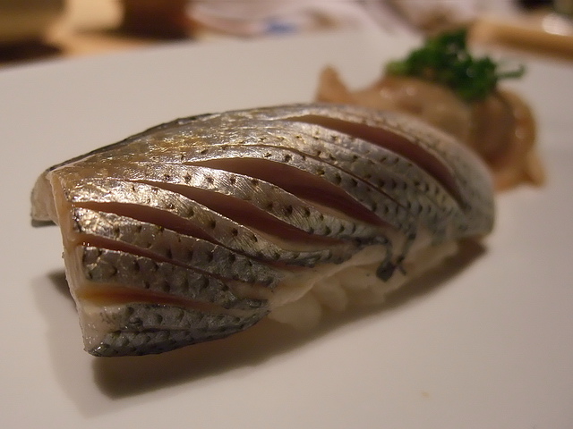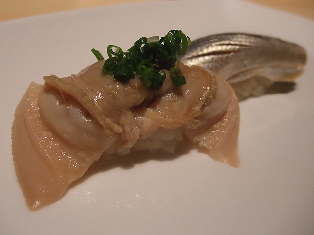 葉子:「難得二訪鮨二七,魚生部分依舊讓人信賴,當然,此次最亮眼的是黑鮪中腹、時不知鮭、鮑魚、烤喜之次、小鯽、漬蛤蜊。缺點部分,還是於醋飯部分,除了第一貫外,後頭上陣的握壽司,其醋飯品質與飽和,與第一貫相比,都顯得失色嚕