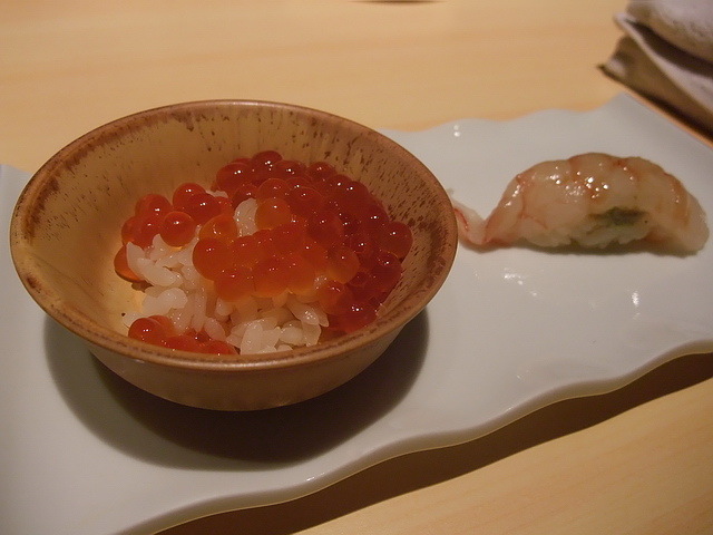 鮭魚卵、富山蝦nigiri:對鮭魚卵的興趣還好,但喜歡筋子多些;反而富山蝦握的滑口鮮嫩,讓葉子念茲在茲