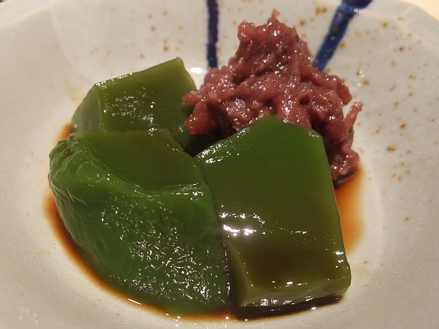 抹茶葛餅佐蜜紅豆、阿薩姆紅茶:葛餅部分,葉子不是很喜歡(個人口味),但蜜紅豆水準很優,下次可以推個紅豆內餡的甜點,應該很受歡迎;至於紅茶部分,澀味過重了些