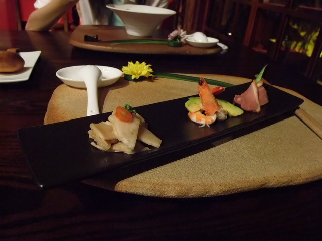 招牌三品:筍子、 鮮蝦佐酪梨、鴨胸三品,味道尚可,普普通通。