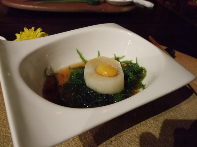 山藥佐鳳眼果:底層是海菜,且淋上味醂與山藥個口感很搭,一掃前菜的失落。