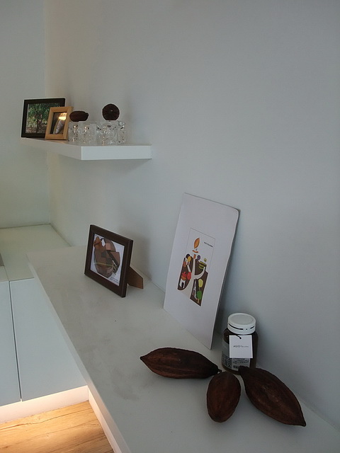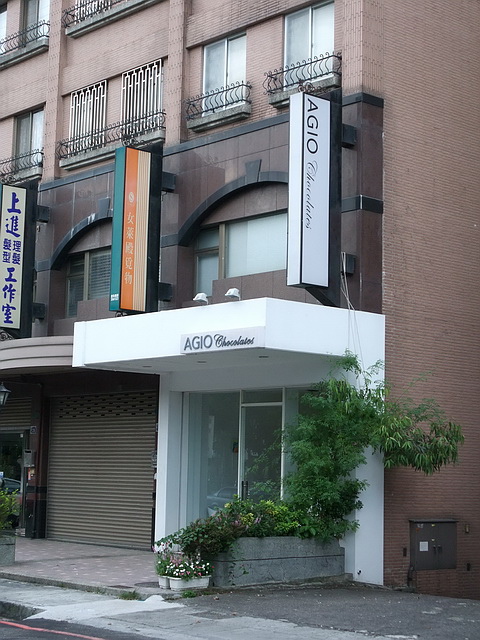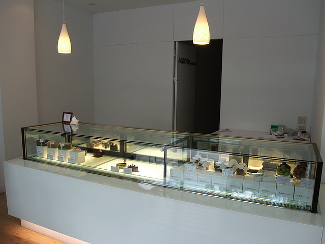 位於河堤旁的AGIO Chocolates,潔白的設計,很容易辨識。店內位置不多,只有兩張桌子(四、二各一組);除了牆上一些裝飾外,正中的櫃位就是陳列著幾款蛋糕、果醬、巧克力等.....