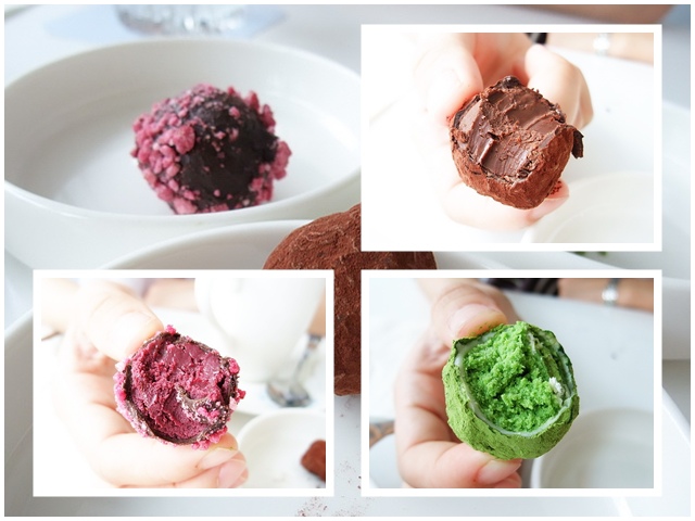 松露巧克力:選擇三款口味(Whiskey、抹茶、黑醋栗),抹茶的味道很重,與內層的白巧克力很反差,味道一整個奇妙(魔女不愛~但葉子很喜歡);至於三顆最推崇的是黑醋栗口味,那酸甜的味道還是比較討人喜愛.....不就是人生嗎~哈~
