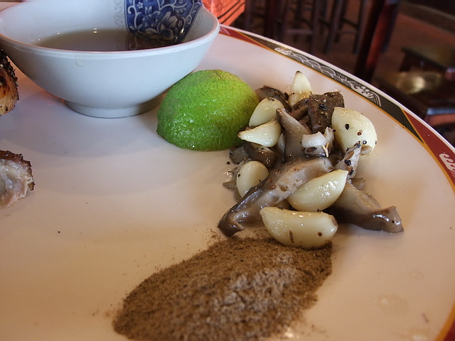 除了雞油外,還有檸檬、蒜頭香菇、胡椒鹽三款佐料