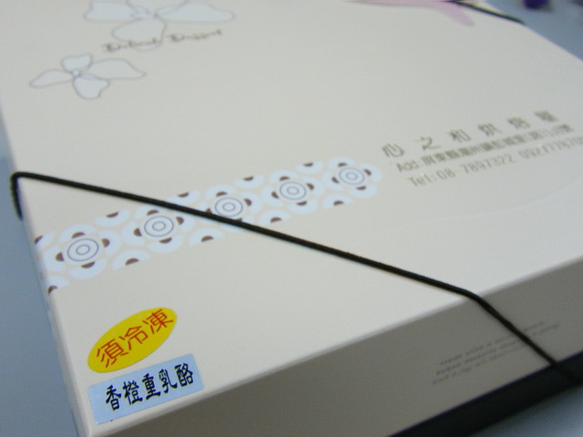 包裝非常簡約,一段出處,一小角味道,這是一款香橙口味的重乳酪蛋糕