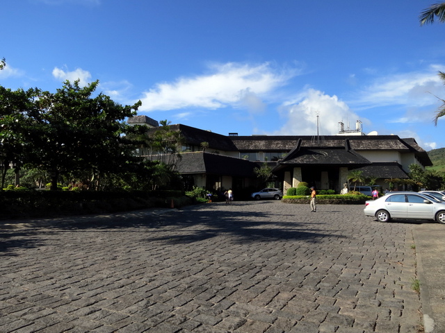 墾丁凱撒大飯店:一進飯店,還沒走進大廳前,先聽從工作人員指示,把車車停好,再步行進入check in。週末假期,生意好得很,停車場可不敷使用吧,都停到大門口嚕!