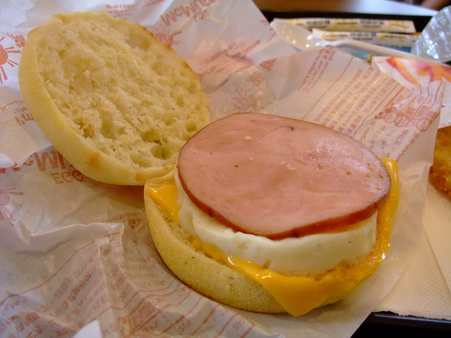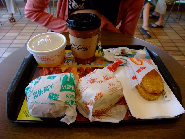 最愛麥當勞的時期,應該是大學時候吧!那時,所推廣的買一送一(優待卷),真的很划算且吃得很撐!但現在,所有優惠,又麻就是要補加多少$,不然就是一些鳥鳥的組合優待......。所以,能不吃速食就不要吃速食,除非魔女要求外,葉子情願多花點$,去享受尼法那一類的早餐,更是充實且健康。