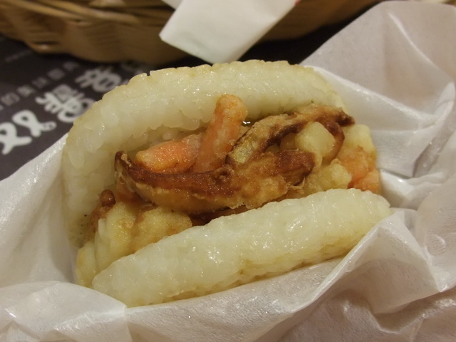海洋珍珠堡:這一個小巧可愛的米漢堡,可是MOS收服葉子的珍品!除了"加大有機米"的香味外,每一口都可以吃到塊狀的料(蝦子、干貝等),真的很有紮實感~一次吃三個都沒問題,因為真的很爽!