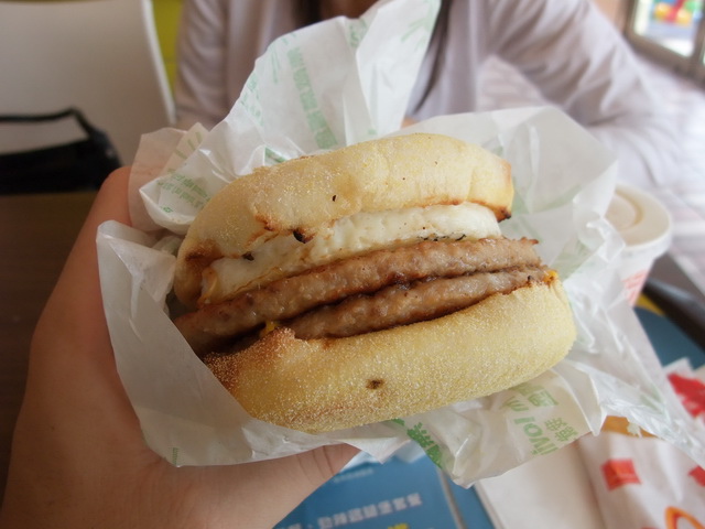 雙層豬肉滿福堡:就是兩塊肉的滿福堡,說真的,會好吃,葉子給你打!吃到一半就覺得很乾很膩......小朋友還是少吃點,除非你不想要未來>"<