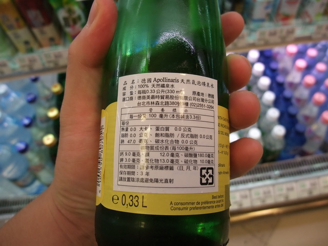 Apollinaris‧天然氣泡礦泉水:源自德國Eifel火山區的岩層孕育而成的氣泡礦泉水,入口的味道很強烈刺激,猶如雪碧那瞬間入喉的爽快,卻無汽水後味的甜膩!(每次喝雪碧,葉子喝兩三口就不喝了,因為快感就是那前面幾口氣泡的,再喝下去的口感,隨著甜度累積而令自己感到膩)。若喜愛強烈刺激口感的氣泡水,這一款德國出產的Apollinaris是不錯得選擇。