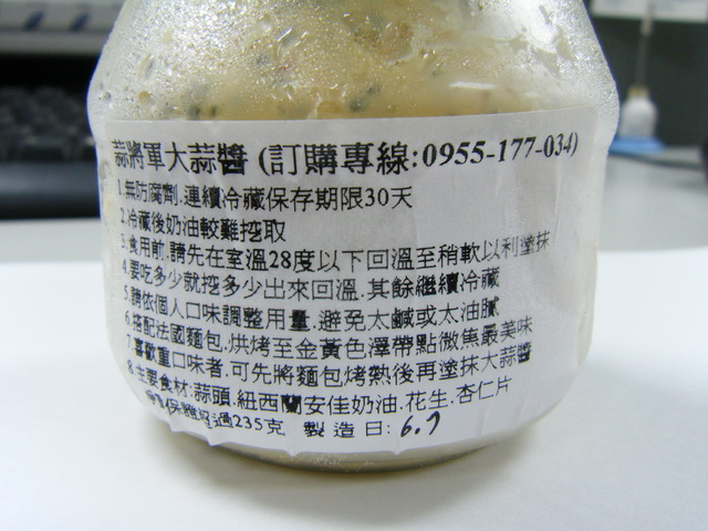 蒜將軍大蒜醬(介紹):除了使用紐西蘭奶油外,更加入花生、杏仁片來增加口感~