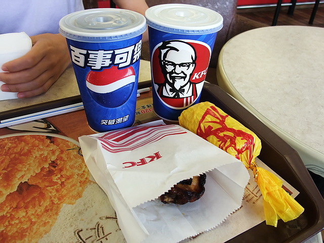 要剛炸好的炸雞,要等15min,這種等待,葉子很願意;先用烤雞、玉米墊墊肚子先~(話說,這間肯爺的汽水還真難喝..Orz)