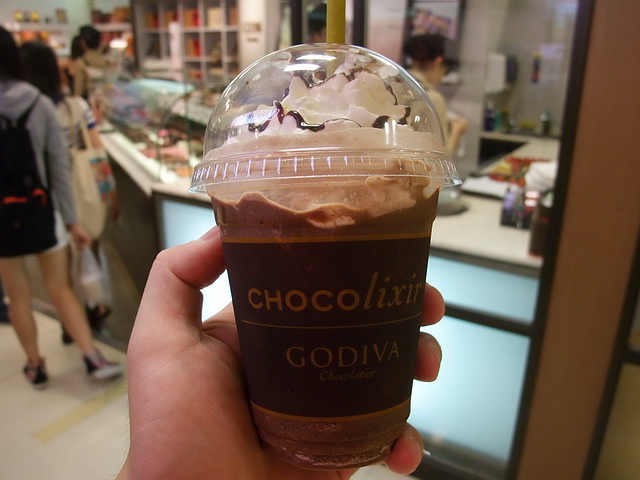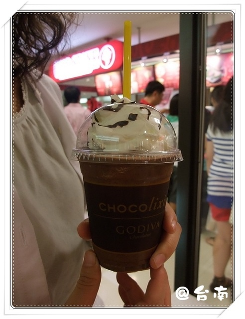 GODIVA:雖然新天地已經消失,算是台南僅存的一間(要撐下去)~除了季節禮盒外,還有各式口味、濃度的巧克力。當然,還有今天的目標『巧克力凍飲』~這是一杯,喝了會上癮的飲料!好比,葉子超愛吃HD歡樂聖代一樣的道理