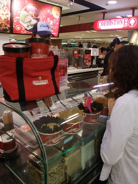 魔女選的Cold Stone‧聖石島,雖然冰淇淋用低熱量(尤其魔女請店員多給點椰絲~但店員完全沒鳥她