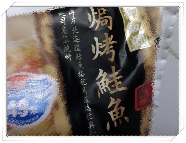 鮭魚的厚度,約(接近)一半飯團高度,而鮭魚上頭覆著起士,但口味上,葉子覺得可有可無啦!畢竟,葉子的目標是那一塊厚鮭魚片,光吃的口感就覺得值得,雖然口味不是很OK~但有吃到厚肉片,就莫名地,覺得早餐有滿足到.........