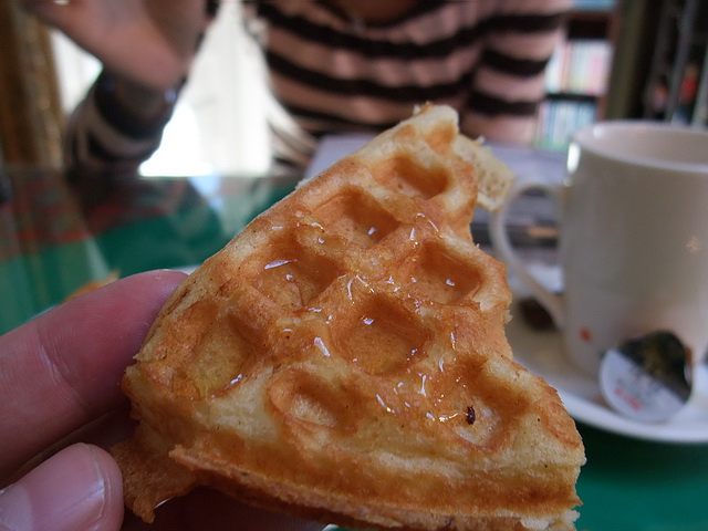 接待的 施大哥,讓時間走得慢些~再做一份蜂蜜鬆餅予魔女品嚐~