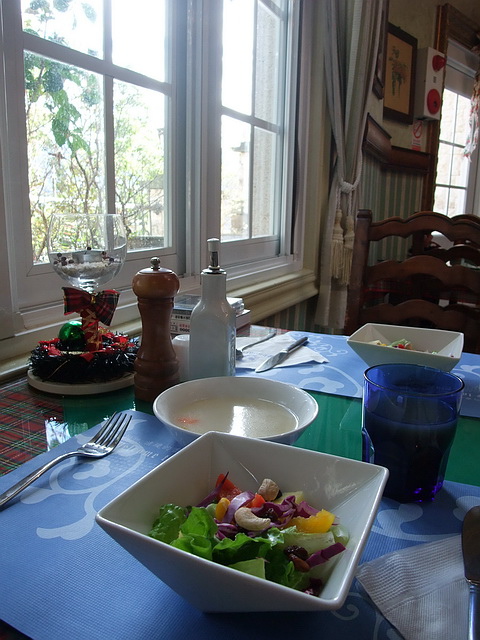 早餐時刻:濃湯、生菜沙拉、主餐拼盤等~無限供應