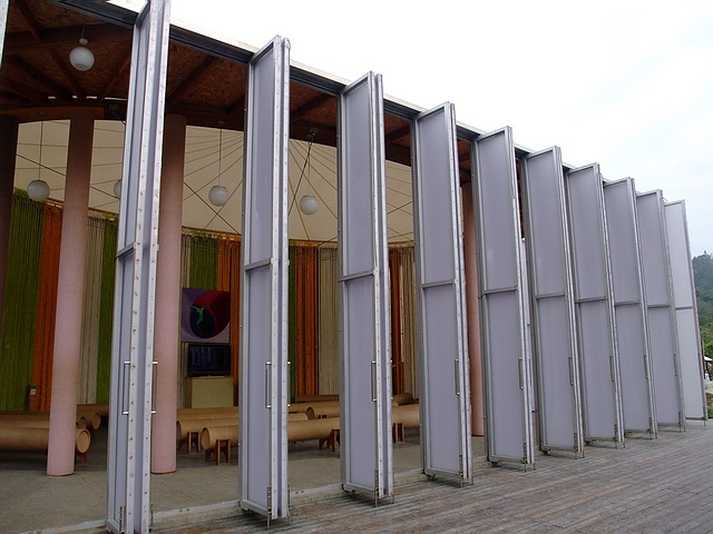 歷史:於1995年,日本阪神大地震後,日本建築師 阪茂先生替倒塌的鷹取教會所建造的一座紙管教堂,象徵著地震重建意義!四年後的台灣,1999‧921大地震,紙教堂帶著不滅的精神遠渡重洋來到了桃米社區,沿續它震災後重生使命.............紙教堂共由五十八根紙管組成,內部座位亦為此。