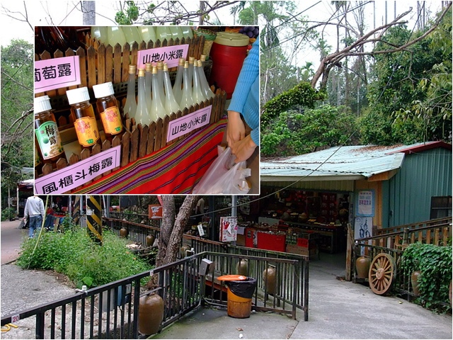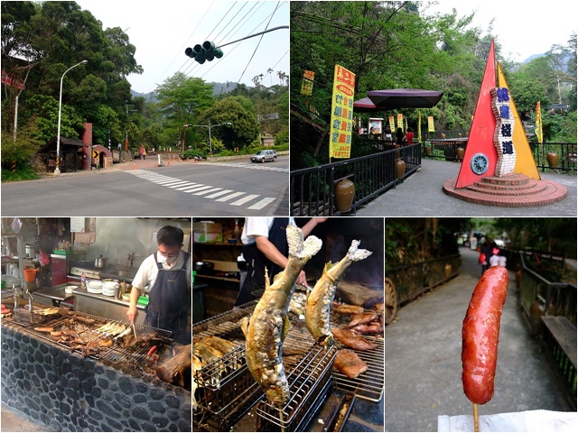 蛇窯對面有個大停車場,雖要付費(50),但也算是買個方便嚕而坡道旁,都有山產等可吃可喝,當然,有烤香腸,葉子可不會錯過,買一隻吃,走上去才有力氣咩!