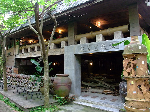 蛇窯文物館:除了蛇窯本體外,還有餐飲、陶古文物、媒體視聽室等,後頭還有拉坯區等而水里蛇窯屬於直烙式窯