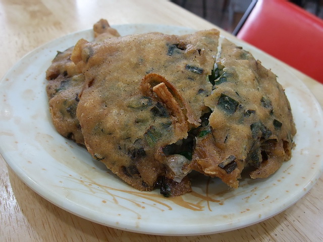 洪維身蚵仔炸:使用韭菜、蚵仔裹著米漿炸起的蚵仔炸,外酥內軟的口感,讓人覺得很特別,但那油膩的味道,卻緊接著湧現!而蚵仔給的份量,與葉子腦海的畫面差蠻多的~整體而言,單點一份生蚵仔吃,可能都比較爽塊一些~哈~但蚵仔的鮮度,至少有保證,沒有那種不新鮮時,所散發的腥味!