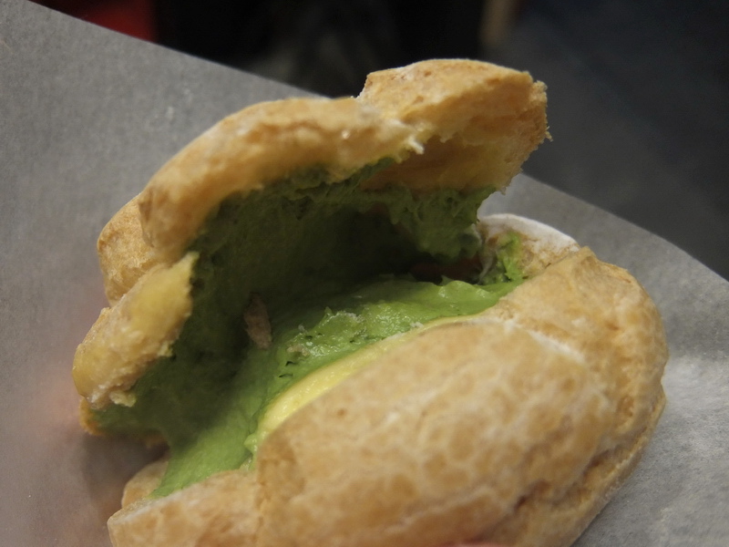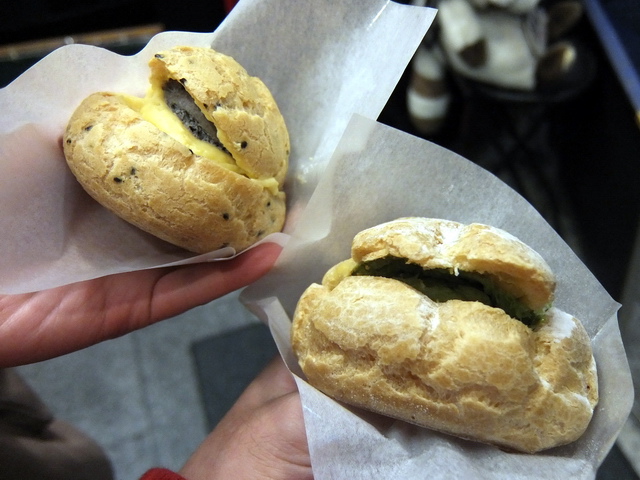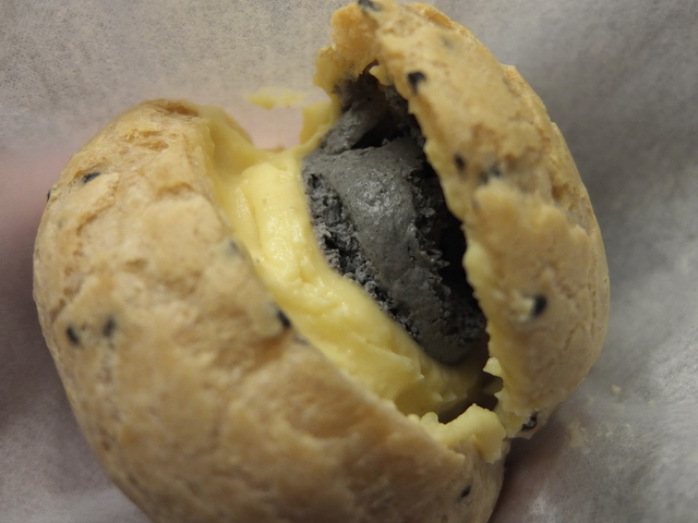 黑芝麻奶油泡芙:外皮屬於微脆偏軟的口感,內餡有兩陀,各為奶油、黑芝麻。相較於抹茶口味,其黑芝麻比較一般,不夠濃郁,有點被奶油蓋過~