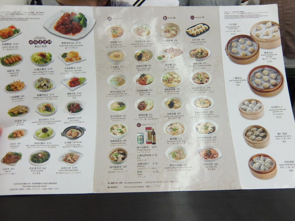 MENU:中英日文,迎合不同客群,可見其出名程度!餐點也越來越豐富,除了招牌的小籠湯包、排骨麵、抄手外,還有各式小菜、麵食可選。至於價格部分,按葉子有紀錄的照片來看,小籠湯包已由$65 (2008) 漲至 $85 (2013)