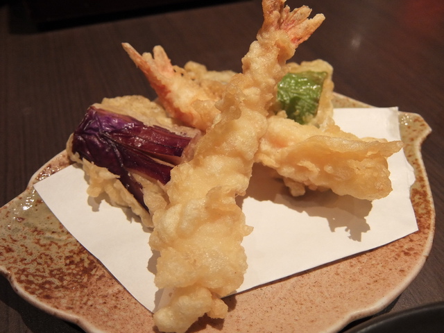 葉子隨選的一品天婦羅蕎麥冷麵,竟然如此令人豐富,除了約兩球份量的蕎麥麵外,還有天婦羅炸物(炸蝦、蔬菜),跟沾麵醬等。冷麵著實不錯,和著芥末醬汁,爽口又有勁!炸物雖然豐富,但有點軟,可惜些~