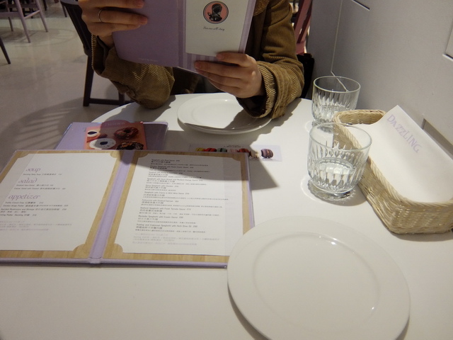 MENU:除了蜜糖吐司,新推出的蜜糖可那滋外,也有整套前菜、主餐等西料可點(但沒有SET),價格約$300上下,當然,餐點不能抵低消,低消就是一人都要點一杯飲料。跟魔女討論後,點一份蜜糖吐司、一份義大利麵、搭配飲料。