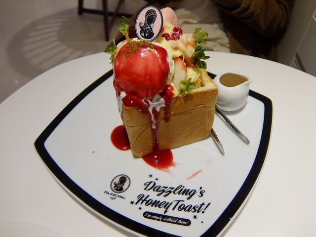 雖然每次逛信義新天地都會經過,但就是沒什麼興趣(可能不太愛甜食?),Dazzling Cafe尚未展店至台南前,已經有好幾間輕食店,推出蜜糖吐司,也算是有同步到!? 雖然沒吃過,但是,當年一到府城,可是有吃過在地ver.的棺材板哩