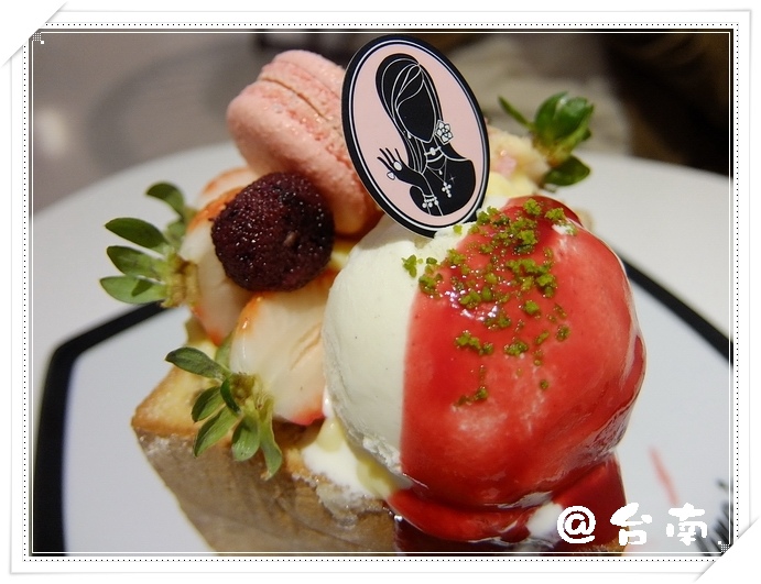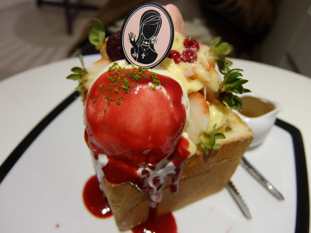 甜蜜派對蜜糖吐司:早已看過各個朋友分享的蜜糖吐司照片,所以沒有太大的驚奇感,若是甜點控,應該就真得會很愛吧!?內容物大概就是一球冰淇淋、草莓、莓果、卡士達醬、macaron等,然後底層為吐司條,再盛於方形吐司內。