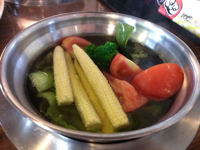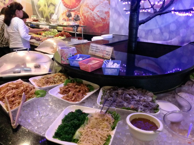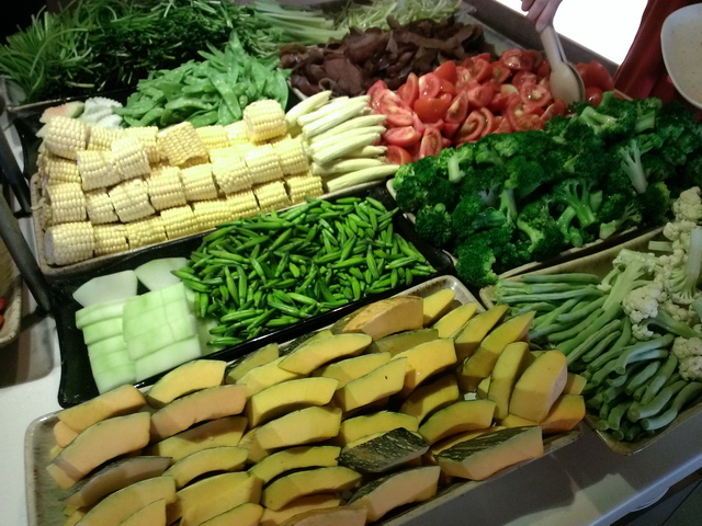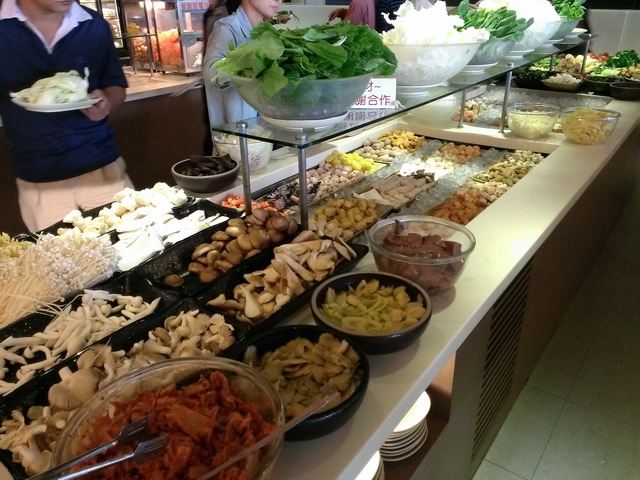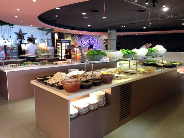 中央食材區,有各式火鍋料(海鮮、丸子等),最讓葉子喜歡的,就是那整齊的蔬菜盤等,礙於不太愛吃火鍋料,葉子&魔女,都專攻蔬食類,跟海鮮、肉品,說實在,如此吃上一兩回,也足飽囉!