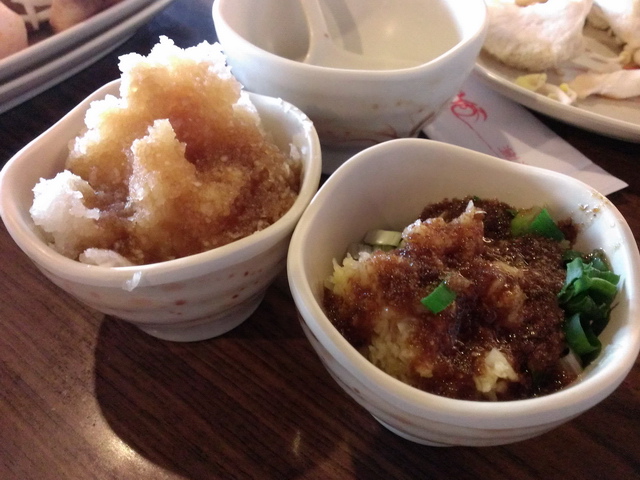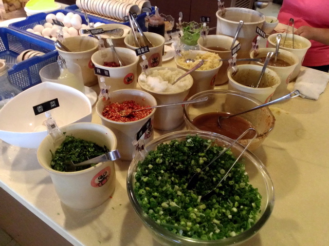 佐料沾醬區(葉子派沾醬 : 大量蔥花、蒜泥、蘿蔔泥、辣椒 + 些許沙茶醬、醬油)