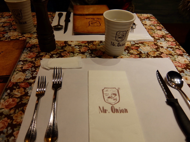 葉子:「初訪Mr. Onion,感覺類似西堤的fu (就是少了服務、附餐水準的西堤),主餐不錯,是讓人最安慰的點!雖然附餐沒有西堤那麼豐富,但主餐或餐點選擇,至少比較多,滿足各種食的族群。」