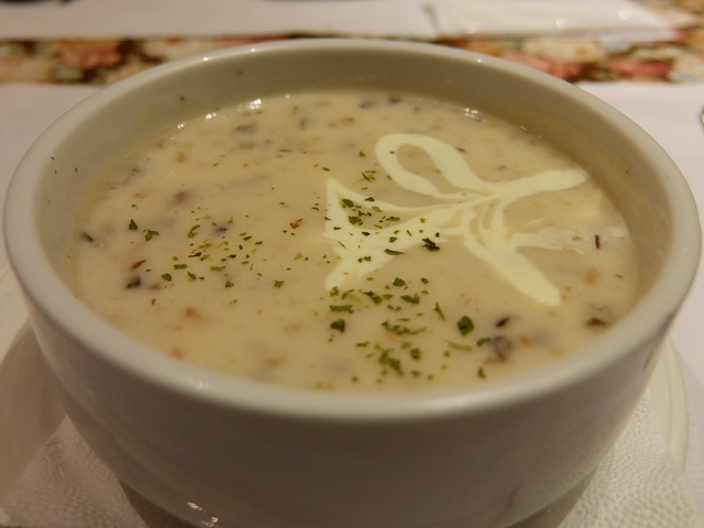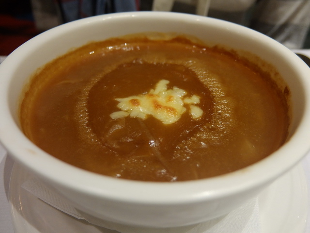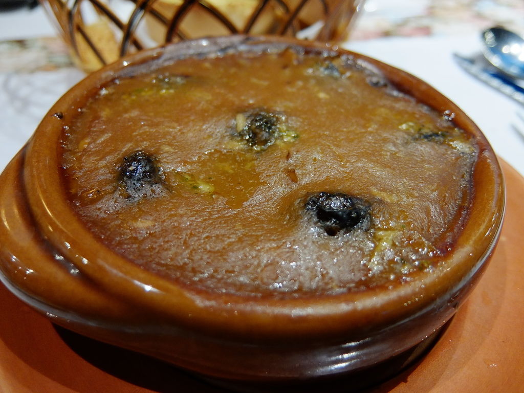 洋蔥濃湯、法式野菇濃湯:兩品都還不錯,洋蔥濃湯比較濃郁好味,野菇濃湯顯得單薄,味道有點死。