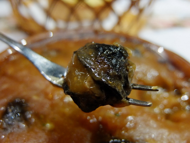 相比於魔女的煙燻鮭魚,葉子挑的香蒜烤田螺,就顯得美味許多;再者,上頭的醬汁,搭著蒜香麵包吃,恰好夠味!
