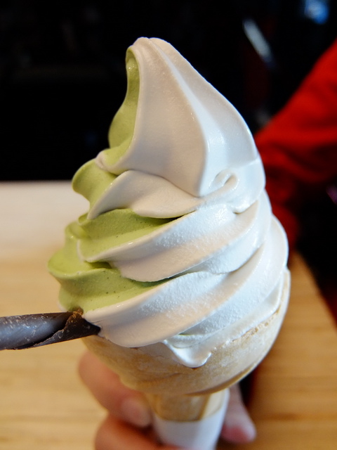 冰淇淋的好滋味外,那霜淇淋呢?魔女選了一款綜合(抹茶×雪鹽黑糖),黑白郎君的姿態