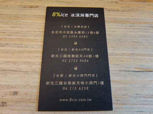 8% ice 冰淇淋專門店‧台南店:位於小西門內的左側,黑色調的裝潢,閃著櫃內繽紛色彩的冰淇淋,外搭帥氣的服務生,還真不賴!人潮部分,沒有台北那般恐怖,加上小西門已經開幕一陣子,按葉子自身觀察,除了週末假期外,一些排隊名店,到正常日、假日冷門時段,就顯得隨手可食的狀況,當然,8%ice亦是如此(旁邊的Opera也不要錯過,抬面上的各種派皮甜點,根本是展現&發揮其派皮的霸氣,值得買的美味