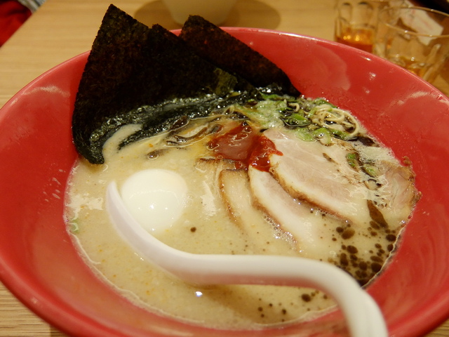 特製赤丸:按葉子口味來看,就是鹹膩版的白丸吧!?多了辣味噌、香油,湯頭的濃郁(油)程度,讓習慣重口味的葉子,喝到後頭,也稍微有點膩!相比於白丸、辣味噌,個人認為赤丸算是排後頭,初嚐的朋友,可以直點白丸 or 辣味噌口味即可。