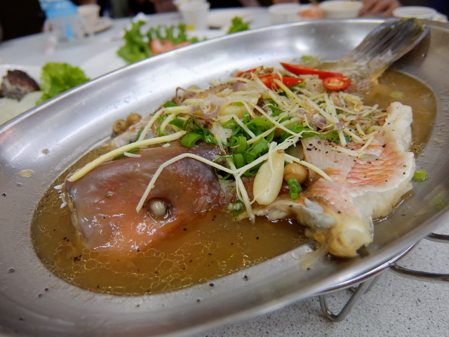 清蒸紅目鰱:肉質細緻,不鬆軟而緊實有口感,佐著破布子、薑絲等配料,清蒸後,那魚肉鮮味與鹹香,又是被秒殺的一盤啦~~~