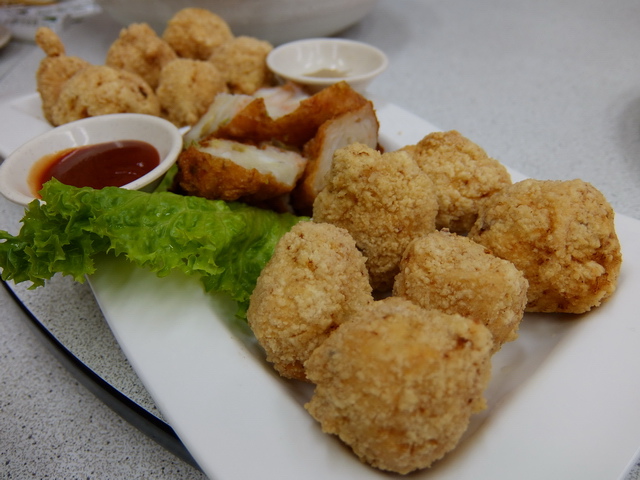 炸物拼盤‧花枝丸、蝦捲:每次來都必吃的花枝丸,可不是坊間那種混非花枝魚漿的便宜品!這不僅大顆,裡頭可是滿著大塊花枝塊,好味!蝦捲部分,就沒有花枝丸出色,畢竟,花枝丸的美味,太強大了(握拳)