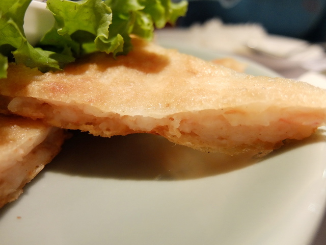 月亮蝦餅:依舊外酥內嫩,用料實在,單吃即可,不沾醬也好味(趁熱吃)