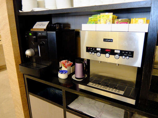 靠門邊的小吧台區,無料,自取享用。(飲水部分,浴室內,有一飲水專用的水龍頭,直接取用即可)