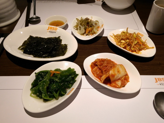 小菜有四品,還不錯吃,但葉子續用最多次的,大概就是泡菜、菠菜。類似MOMO的蔬菜推車(似乎沒有專人負責推著問,這部分頗差,有怕人吃的感受)所以,若想續用,請直接叫服務生,這可比你窩在位置上,等候推車巡禮,還迅速!