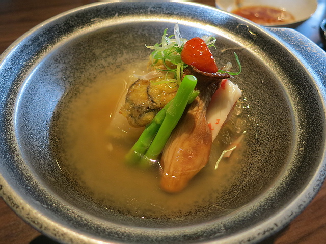 鮑魚冷豆腐:很棒的開場首品,柴魚冷湯搭配豆腐,很開胃,反而,有沒有鮑魚,不是重點!