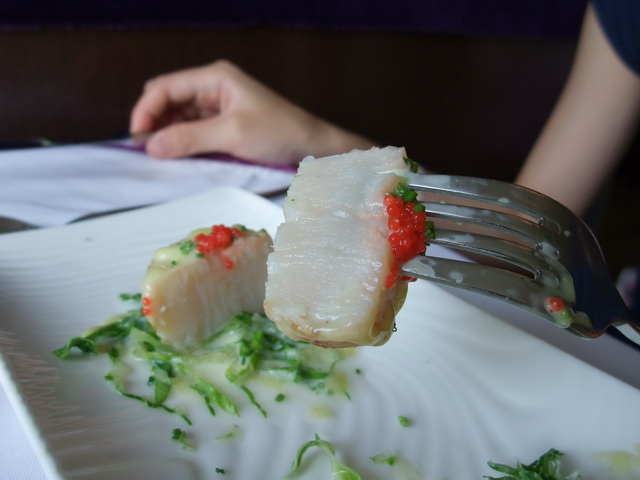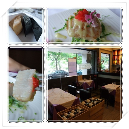 明太子干貝千層翠綠蘆筍佐芥末辣根醬:清爽且脆嫩的蘆筍,入口一掃悶熱的心情;而那干貝的嫩更是令人開胃,明太子的鹹味更引出它的鮮甜,很令人喜愛的一道前菜~