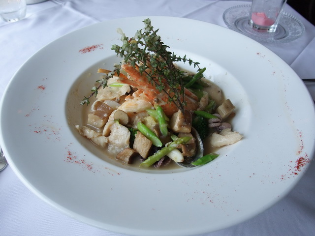 白松露奶醬燴牛肝菌春蔬海鮮小龍蝦:熬煮的湯汁很有味道,葉子覺得拿來做燉飯應該會更棒!至於海鮮料方面,除了小龍蝦受到葉子的喜愛外,其它的配料太過簡單,且吃到小章魚&貝類,直覺味道不是很鮮。基本上這一盤主餐,葉子覺得很不值得(魔女:「你這一盤,很像外面熱炒賣的海鮮總匯....XD」)